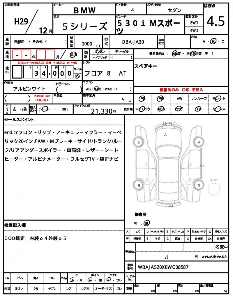 This stunning 2017 BMW 5 SERIES Sedan is a beautiful white ride that turns heads on the road. Under the hood, you’ll find a reliable 2000cc engine that runs smoothly on gasoline, paired with a 2WD system and the convenience of power steering and power windows. As a used car from Japan, this vehicle is available for international buyers through AutoXGlobal, making it a great option for those looking to import a reliable ride. Don’t miss out on this Japanese used car export – the 2017 BMW 5 SERIES is a fantastic choice for anyone looking for a solid, dependable sedan.