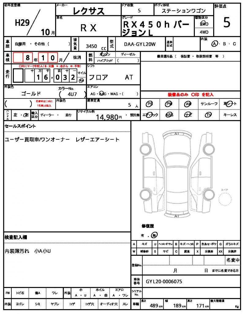 This stunning 2017 LEXUS RX Wagon is a head-turner in its gleaming gold finish. Under the hood, you’ll find a reliable 3450cc gasoline engine, paired with a 2WD drivetrain and featuring power steering for smooth handling. As a used car from Japan, this RX is now available for international buyers through AutoXGlobal. Whether you’re looking for a reliable daily driver or a comfortable road trip companion, this Japanese used car export from LEXUS is a great choice.