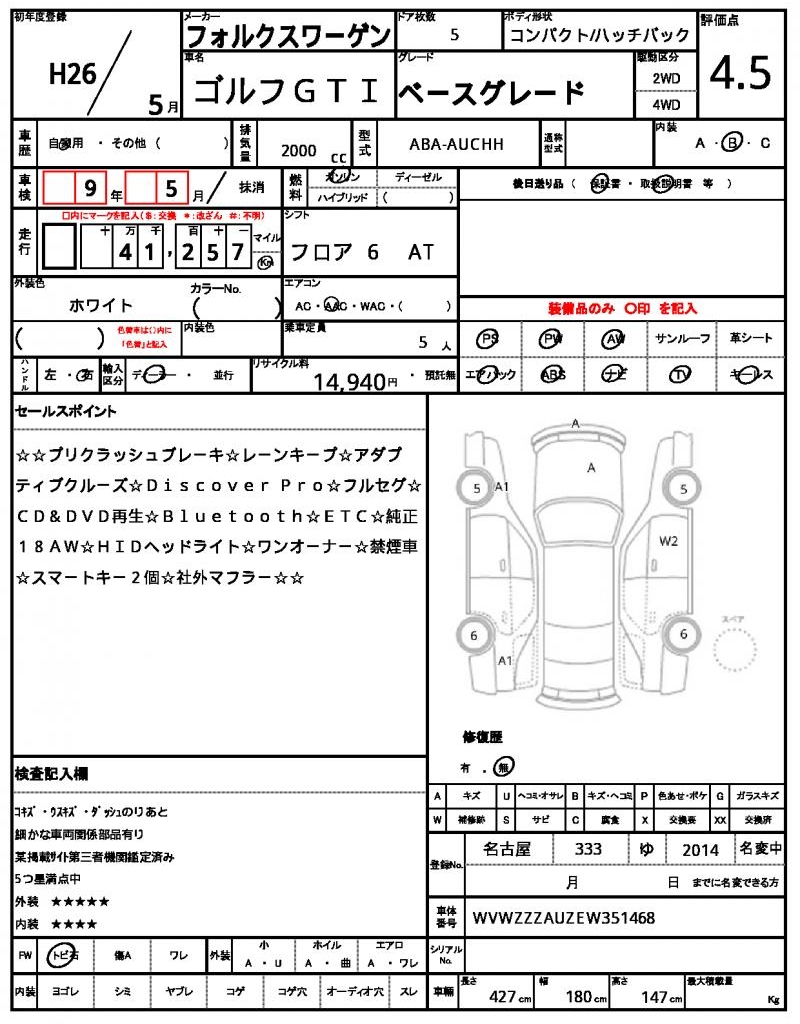 This 2014 VOLKSWAGEN GOLF GTI is a sleek white hatchback that’s sure to turn heads on the road. Under the hood, you’ll find a powerful 2000cc engine that runs on gasoline and features smooth power steering for a comfortable drive. As a used car export from Japan, this vehicle is available for international buyers through AutoXGlobal. With its aluminum wheels and power windows, this Japanese used car export, the 2014 VOLKSWAGEN GOLF GTI, is the perfect ride for anyone looking for a reliable and stylish vehicle.