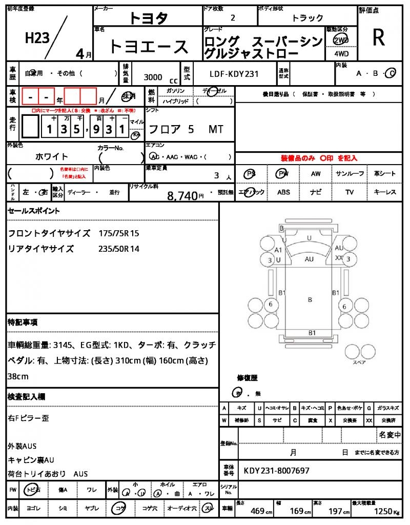 This 2011 Toyota Toyoace white truck is a reliable choice for any transportation needs. Under the hood, you’ll find a 3000cc diesel engine that provides plenty of power, and with power steering and driver’s airbag, you’ll be well-equipped for safe and confident driving. As a used car from Japan, this vehicle is available for international buyers through AutoXGlobal. For a rugged and dependable Japanese used car export, look no further than this 2011 Toyota Toyoace truck.