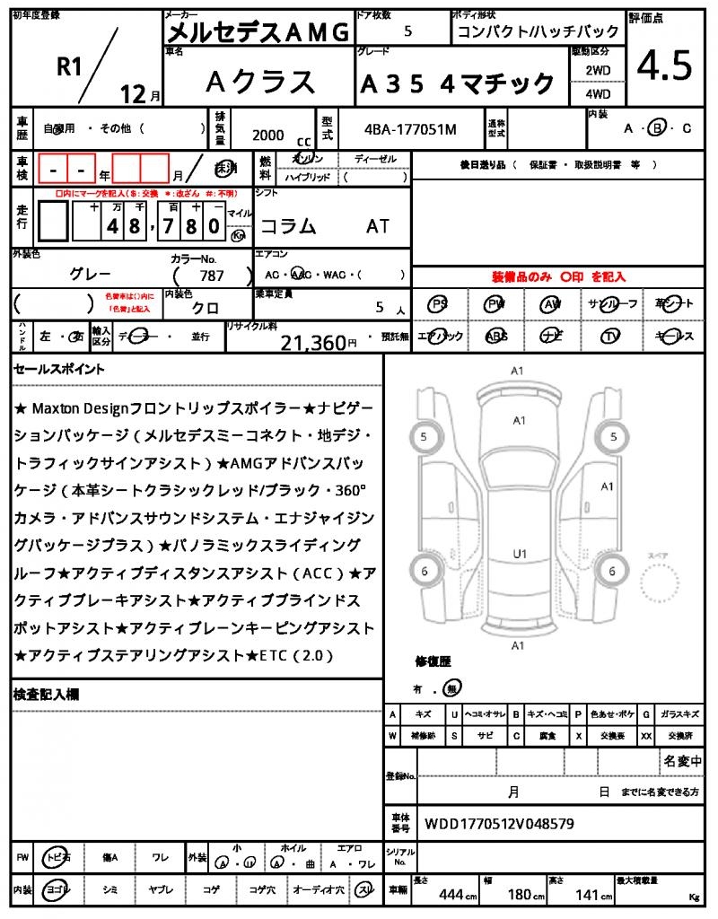 Meet the 2019 MERCEDES AMG A-CLASS Hatchback, a sleek gray ride that’s sure to turn heads. Under the hood, you’ll find a powerful 2000cc engine that sips on gasoline and provides a smooth ride thanks to its 2WD system and features like power steering and power windows. As a used car from Japan, this A-CLASS is available exclusively through AutoXGlobal for international buyers looking for a reliable and affordable ride. Check out this Japanese used car export today and experience the thrill of driving a MERCEDES AMG A-CLASS Hatchback, exported straight from Japan.