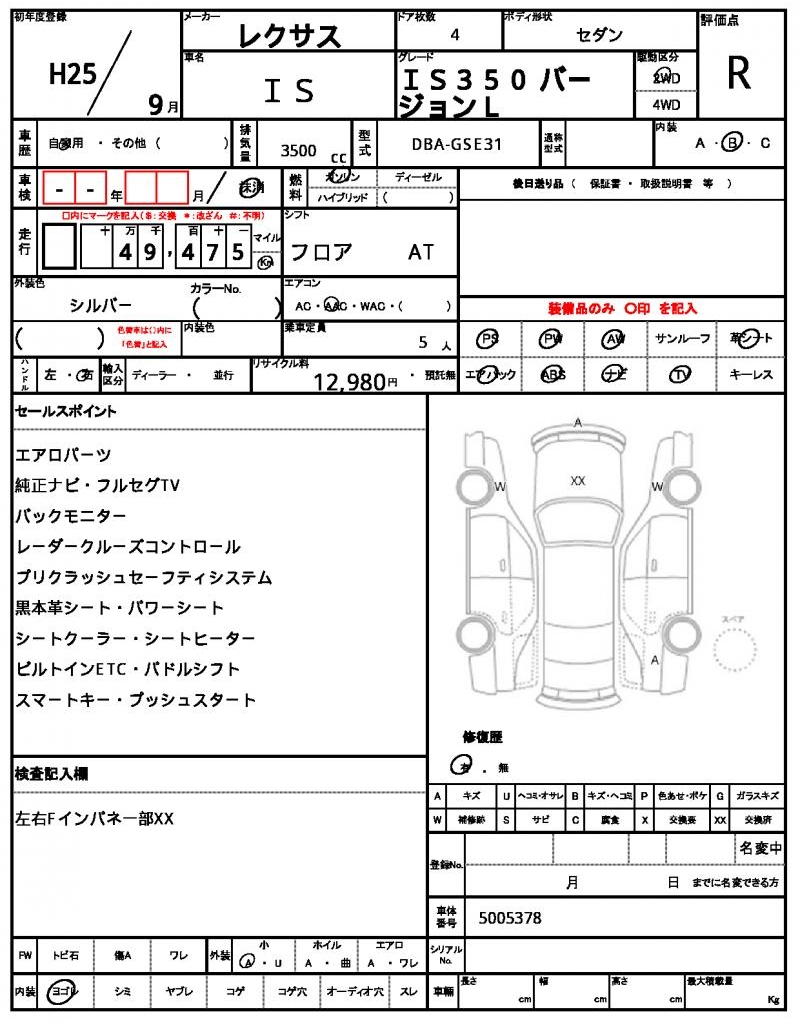 The 2013 LEXUS IS sedan in silver is a reliable and stylish ride, featuring a powerful 3500 cc gasoline engine and 2WD drive system. With power steering and power windows, this car offers a smooth and convenient driving experience. This used car is being exported from Japan through AutoXGlobal for international buyers, providing a convenient and worry-free way to bring this quality vehicle home. If you’re looking for a reliable and feature-packed sedan, the LEXUS IS is a great choice – and with our export from Japan program, you can bring one home today.