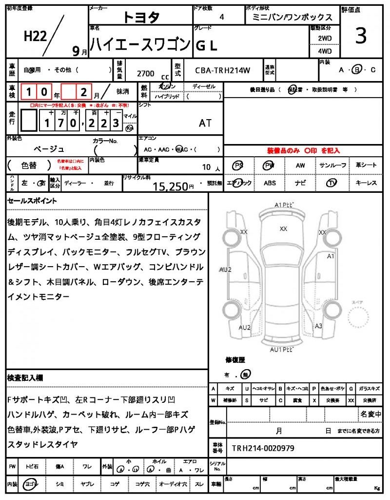 The 2010 Toyota Hiace Wagon, a bright yellow minivan, is a reliable ride for families and groups of all sizes. Under the hood, you’ll find a 2.7-liter gasoline engine with power steering to make maneuvering a breeze. As a used car export from Japan, available through AutoXGlobal, this Hiace Wagon is perfect for international buyers looking for a trusted and affordable ride. With power windows and a driver’s airbag, this Toyota Hiace Wagon is a Japanese used car export that’s ready to hit the road.