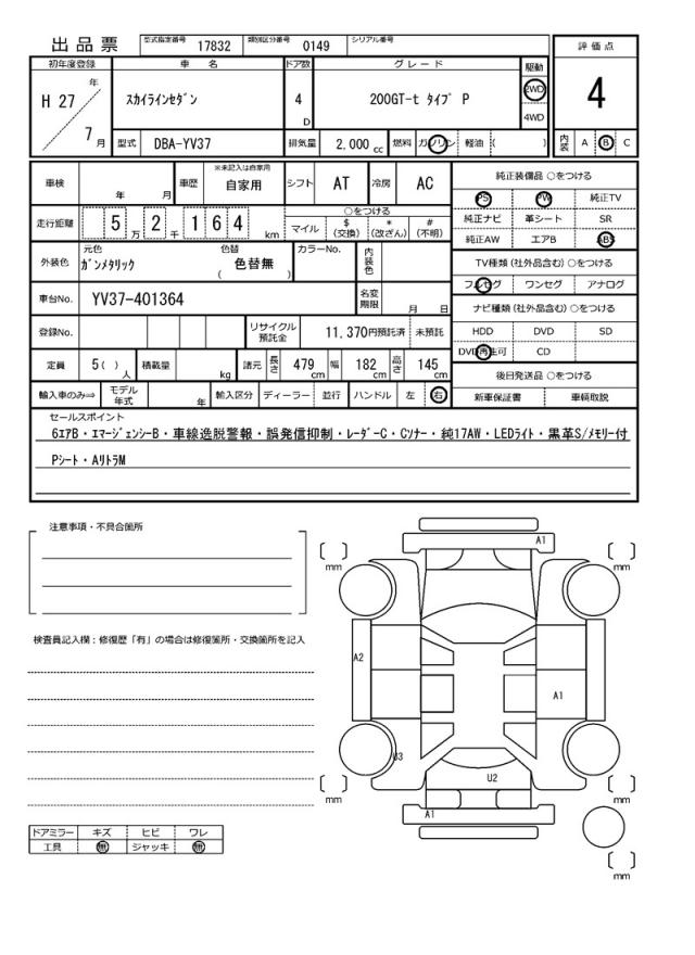 The 2015 NISSAN SKYLINE Sedan, a stunning Gunmetal example, offers a unique blend of style and performance. Under the hood, you’ll find a 2000 cc gasoline engine, paired with a smooth 2WD system and equipped with power steering for effortless handling. As a used car export from Japan, this vehicle is available through AutoXGlobal for international buyers. For those seeking a reliable and feature-packed Japanese used car export, the NISSAN SKYLINE is an excellent choice, complete with power windows and stylish Aluminum wheels.