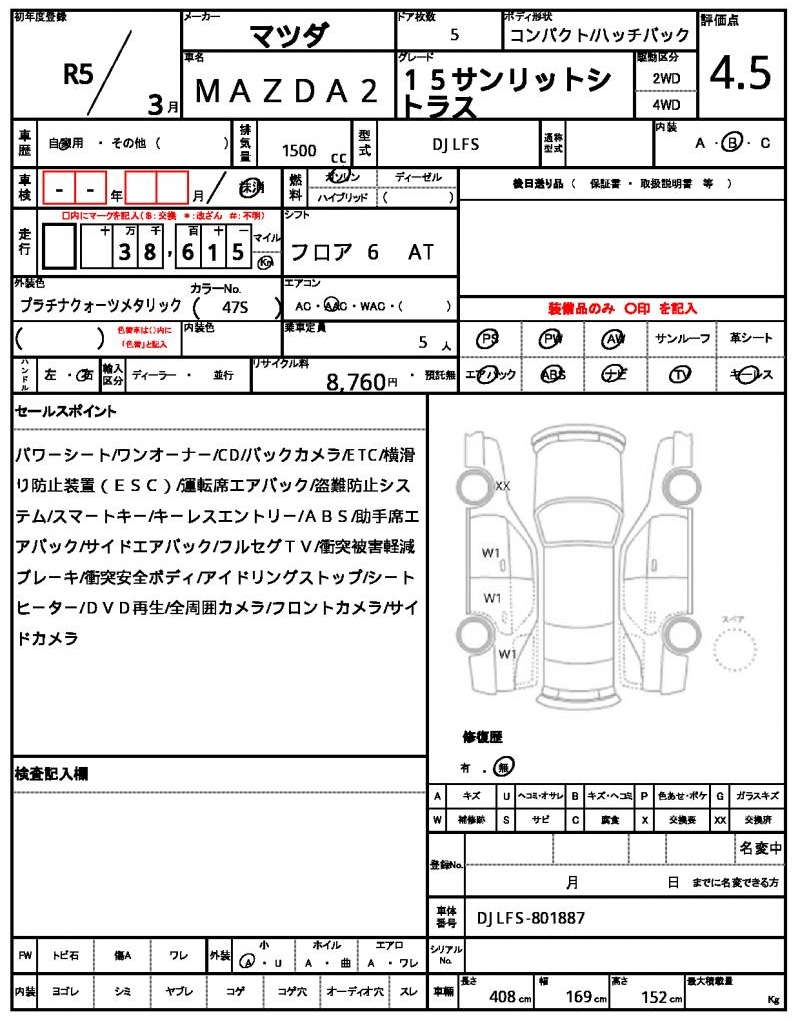 This sleek white 2023 MAZDA MAZDA2 Hatchback is a head-turner on the road, featuring a 1500 cc gasoline engine and 2WD drive system for smooth handling. With power steering and power windows making driving a breeze, this compact car is perfect for navigating city streets or long highway trips. As a used car from Japan, it’s available exclusively through AutoXGlobal for international buyers looking for a reliable and affordable ride. If you’re in the market for a fuel-efficient Japanese used car export, the 2023 MAZDA MAZDA2 is a great choice with its aluminum wheels adding a touch of style to its already sporty design.