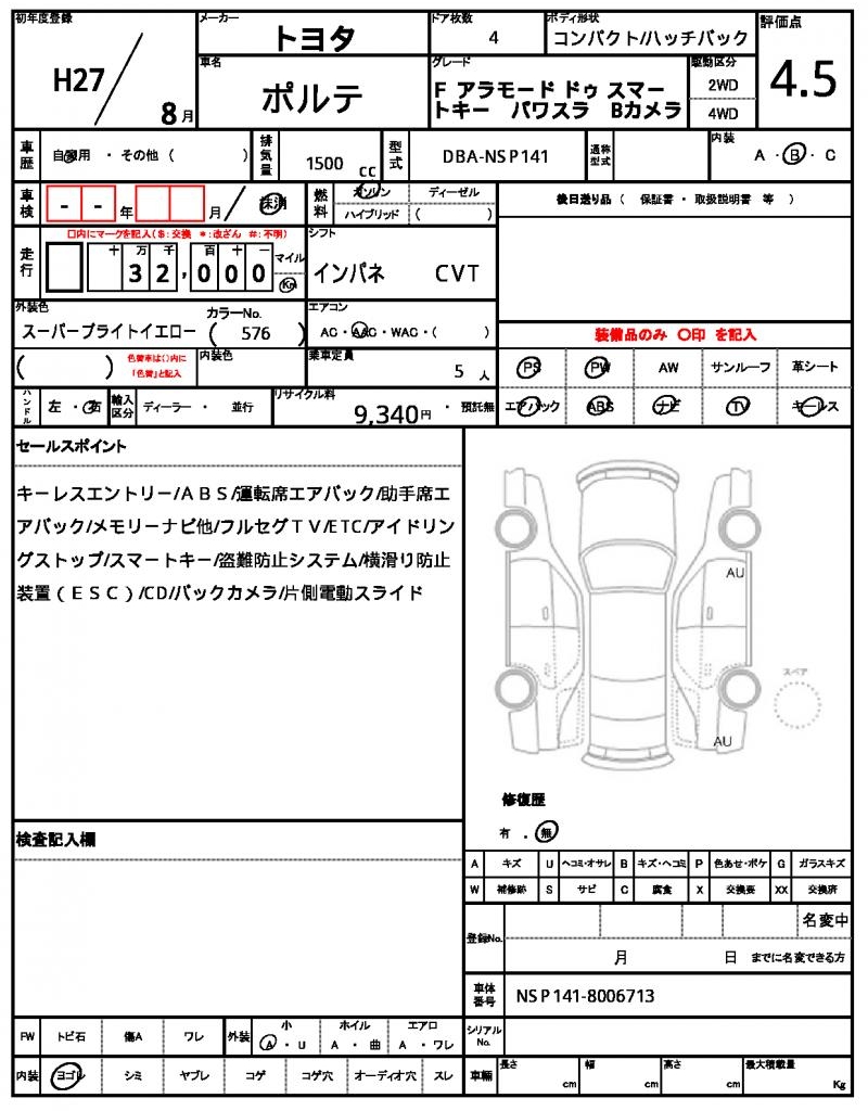 This 2015 Toyota Porte hatchback stands out with its bright yellow exterior. Under the hood, you’ll find a reliable 1500 cc gasoline engine that’s paired with a smooth 2WD drive system and features like power steering and power windows. As a used car from Japan, this Porte is now available for international buyers through AutoXGlobal. If you’re looking for a reliable and affordable Japanese used car export, look no further than this 2015 Toyota Porte.