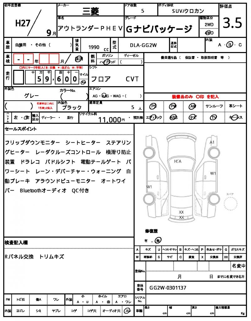 The 2015 MITSUBISHI OUTLANDER PHEV, a sleek gray SUV, is a reliable ride with a powerful 1990 cc engine and hybrid fuel system, allowing for smooth handling and efficient fuel consumption. With power steering and aluminum wheels, this vehicle makes for a comfortable and stylish drive. As a used car from Japan, this MITSUBISHI OUTLANDER PHEV is available through AutoXGlobal for international buyers looking for a high-quality ride. Whether you’re looking for a reliable daily driver or a fun adventure companion, this Japanese used car export is a great option.