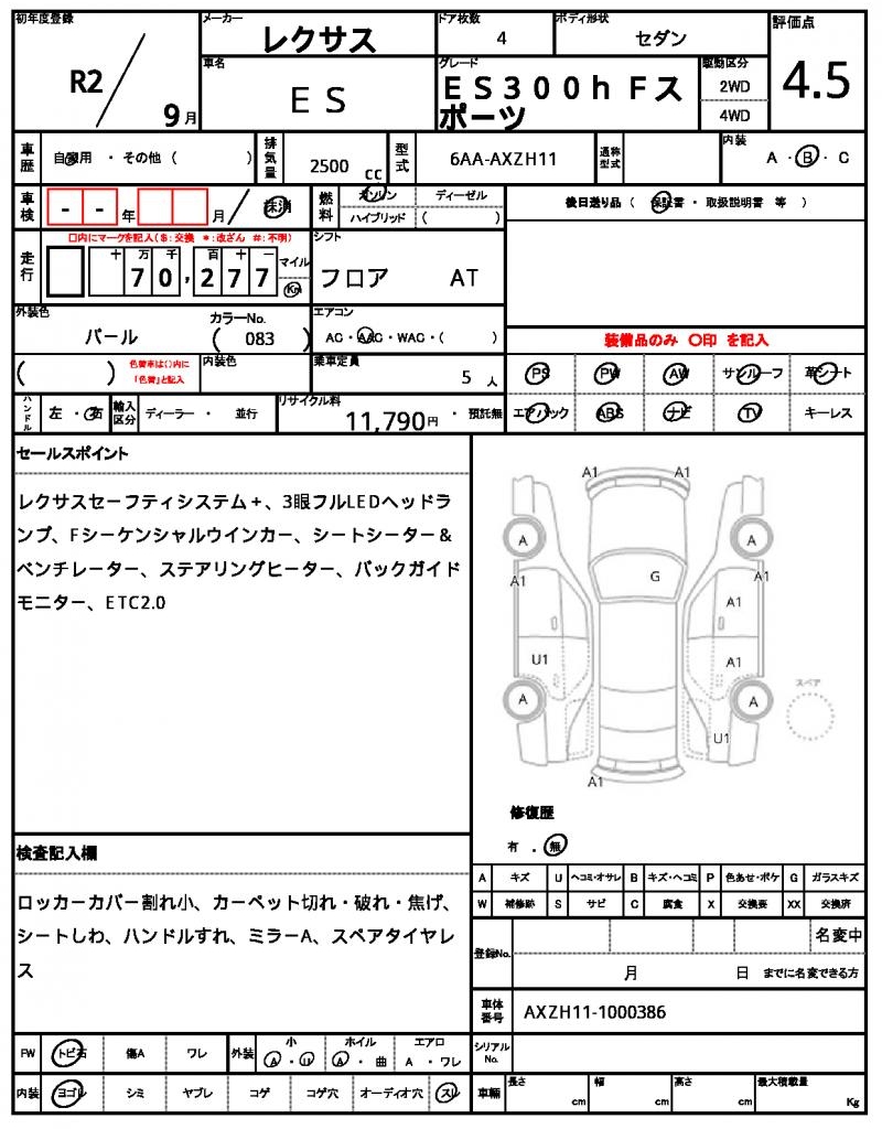 This 2020 LEXUS ES Sedan, with its stunning Pearl exterior, is a sleek and sophisticated ride. Under the hood, you’ll find a 2500 cc gasoline engine, paired with a smooth 2WD drive system, and enjoying the benefits of power steering. As a used car from Japan, this ES is now available for international buyers through AutoXGlobal, offering a unique opportunity to own a reliable and feature-packed vehicle. If you’re looking for a Japanese used car export, the 2020 LEXUS ES is a great choice, featuring aluminum wheels and power windows.