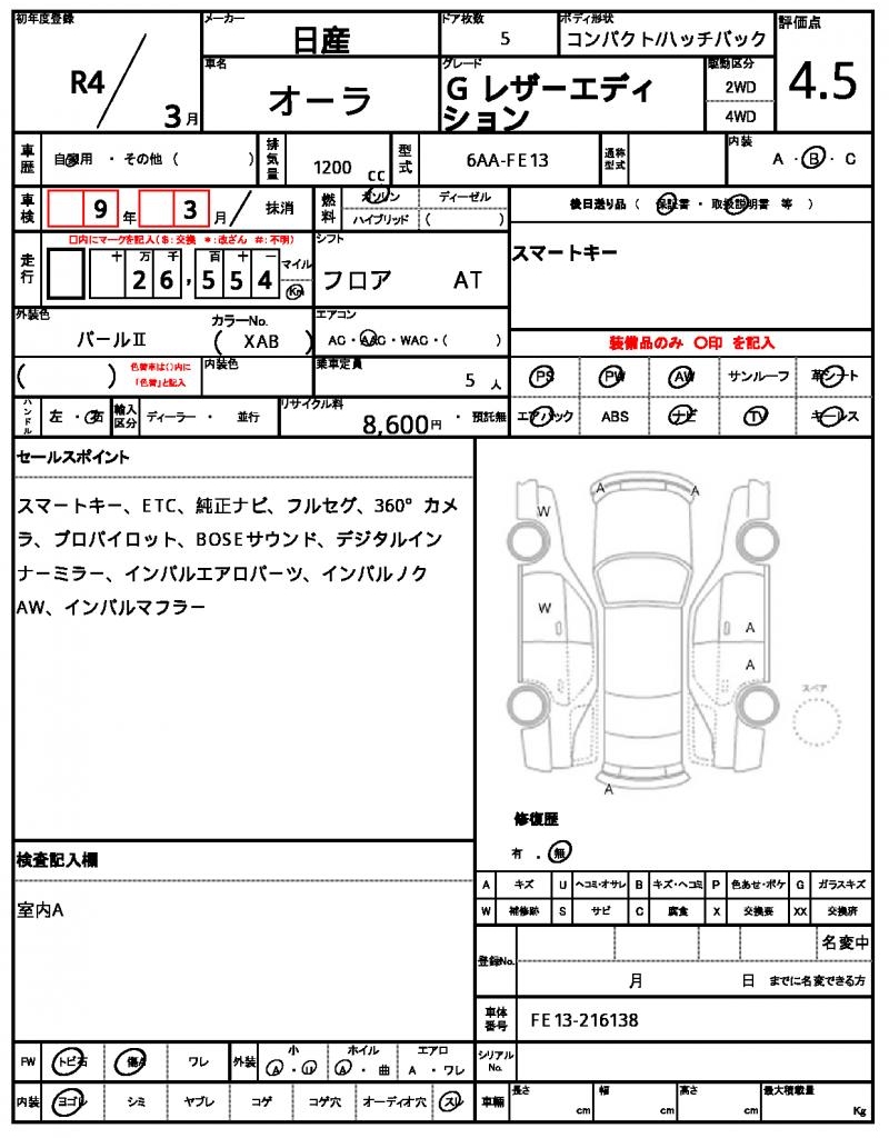 The 2022 Nissan Aura Pearl hatchback is a stylish and reliable ride, perfect for those who want a fun and fuel-efficient vehicle. Under the hood, you’ll find a 1200 cc engine that runs on gasoline and offers smooth power steering and power windows for added convenience. As a used car from Japan, this Aura is available for international buyers through AutoXGlobal. Whether you’re looking for a Japanese used car export or a great value, the 2022 Nissan Aura is a great choice for anyone seeking a reliable and feature-packed hatchback.