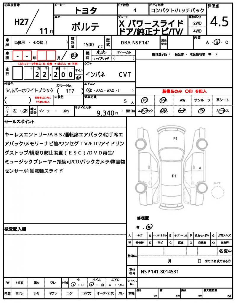 The 2015 Toyota Porte is a reliable and practical silver hatchback that’s perfect for daily commutes. Under the hood, you’ll find a 1500cc engine fueled by gasoline and paired with a 2WD system, making it easy to maneuver in tight spaces and featuring power steering for a smooth ride. As a used car from Japan, this Toyota Porte is now available for international buyers through AutoXGlobal. Get ready to export your new Japanese used car, the 2015 Toyota Porte, and enjoy its power windows and driver’s airbag for a comfortable and safe driving experience.