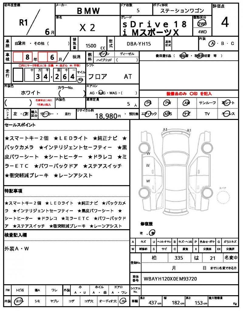 This stunning white 2019 BMW X2 Wagon is a head-turner, with its sleek design and powerful engine. Under the hood, you’ll find a 1500cc gasoline engine, paired with a smooth 2WD drive system, complete with power steering and power windows. As a used car from Japan, this X2 is available exclusively through AutoXGlobal for international buyers. Don’t miss the opportunity to export this Japanese used car, a rare find for any BMW enthusiast – the 2019 BMW X2 Wagon is waiting for you!