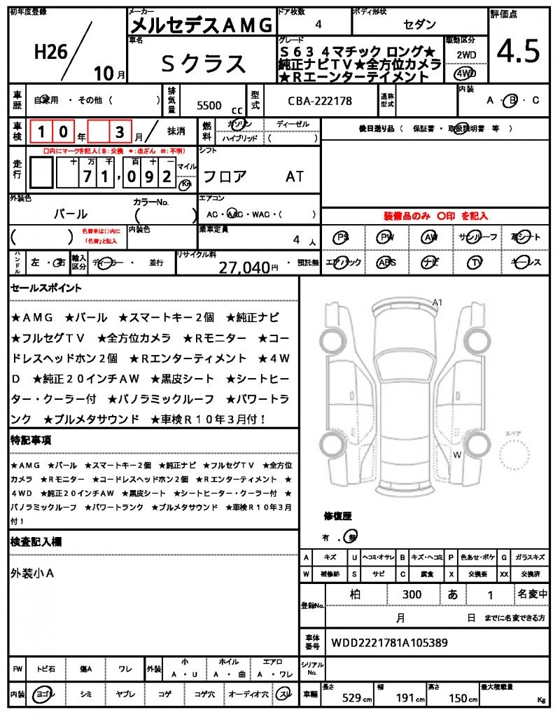 The 2014 MERCEDES AMG S-CLASS Sedan in Pearl shines with its powerful 5500 cc engine, fueled by gasoline and driven by 4WD, making it a thrill to ride on the road, complete with features like power steering and aluminum wheels. Under the hood, the 5500 cc engine purrs smoothly, providing a responsive ride and ample power, while the power windows make driving a breeze. This exceptional ride is a used car export from Japan, available exclusively through AutoXGlobal for international buyers looking for a reliable and luxurious vehicle. The MERCEDES AMG S-CLASS is a Japanese used car export that’s sure to turn heads, with its stunning Pearl finish and impressive performance capabilities making it a standout on the road.