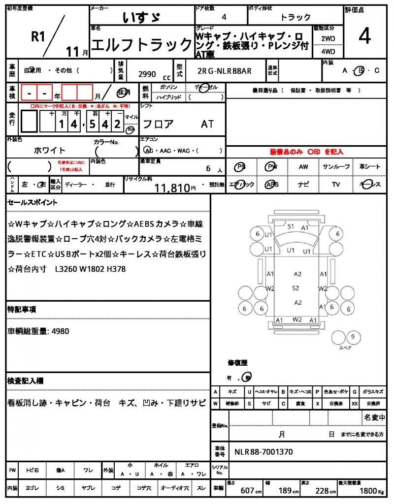 The 2019 ISUZU ELF TRUCK, a reliable and sturdy white truck, is a great find for those in the market for a dependable workhorse. Under the hood, you’ll find a 2990cc diesel engine, paired with a 2WD drive system, and featuring power steering and driver’s airbag for added safety and convenience. As a used car from Japan, this ISUZU ELF TRUCK is available for international buyers through AutoXGlobal. Whether you’re looking to haul heavy loads or cruise around town, this Japanese used car export is a great option to consider.