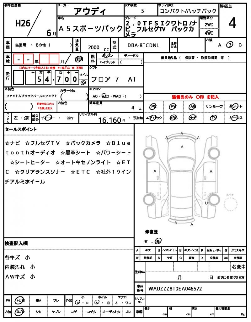 This 2014 Audi A5 Sportback is a sleek black hatchback that’s sure to turn heads on the road. Under the hood, you’ll find a 2000cc engine fueled by gasoline and paired with a 4WD system, making it perfect for navigating various terrain. As a used car from Japan, this A5 Sportback is available exclusively through AutoXGlobal for international buyers. Whether you’re looking for a reliable ride or a stylish statement, this Japanese used car export from Audi is a great choice for anyone seeking a high-quality, pre-owned vehicle.