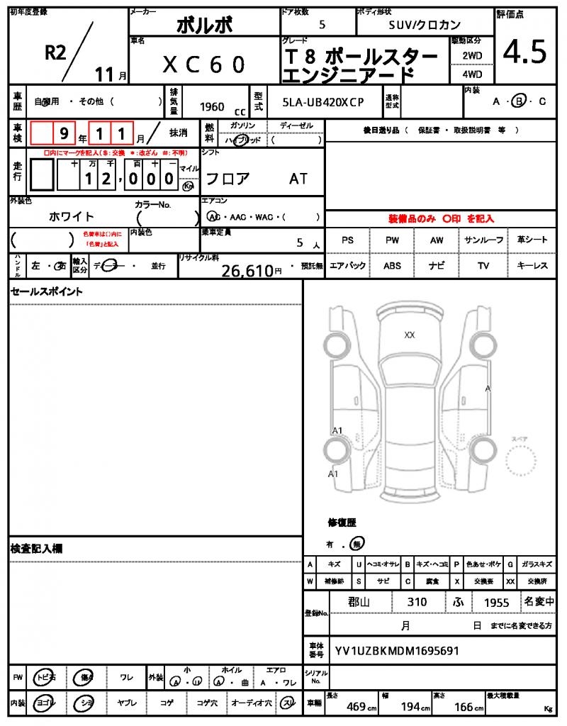 The 2020 Volvo XC60, a sleek and modern SUV, is a stunning white ride that’s sure to turn heads. Under the hood, you’ll find a 1960 cc hybrid engine, paired with a 2WD drive system, and featuring air conditioning for comfortable cruising. As a used car from Japan, this Volvo XC60 is available for international buyers through AutoXGlobal, making it easy to bring this great ride to your doorstep. Whether you’re looking for a reliable commuter or a fun family hauler, this Japanese used car export is a fantastic choice.