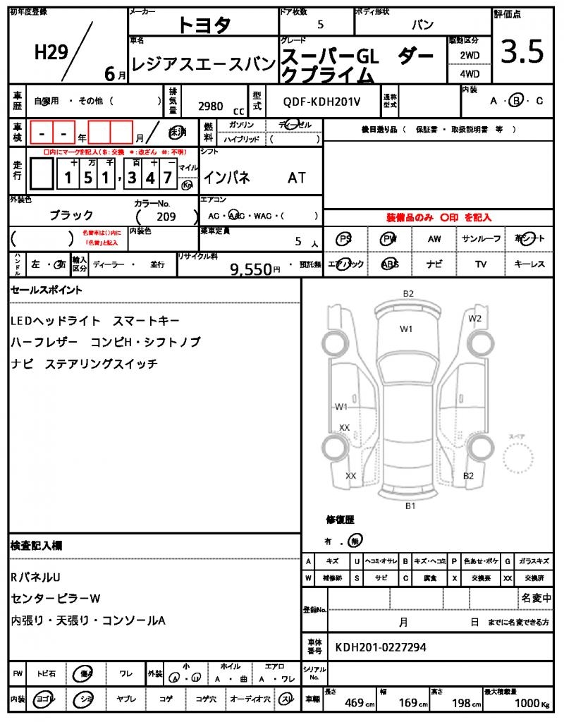 The 2017 Toyota Regius Ace Van is a reliable and spacious black minivan, perfect for families or businesses alike. Under the hood, you’ll find a 2980cc diesel engine providing smooth power and efficient fuel consumption, along with power steering and driver’s airbag for added safety. As a used car from Japan, this Toyota Regius Ace Van is available through AutoXGlobal for international buyers looking for a hassle-free import experience. With its robust diesel engine and 2WD drive, this Japanese used car export is ready to hit the roads in its new home.