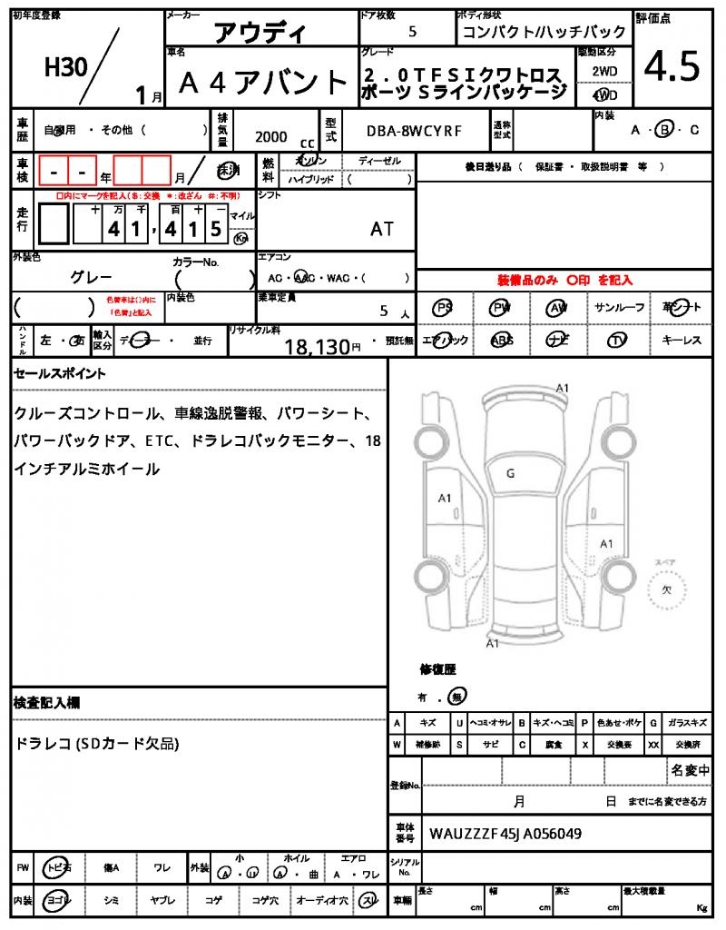 This 2018 Audi A4 Avant is a gray hatchback that packs a punch with its 2000cc gasoline engine and 4WD drive system, making it perfect for those who crave adventure on and off the road. The power steering and power windows make for a comfortable driving experience. Available through AutoXGlobal for international buyers, this used car is an excellent option for those looking to import a reliable ride. Experience the luxury of the Audi A4 Avant in a Japanese used car export.