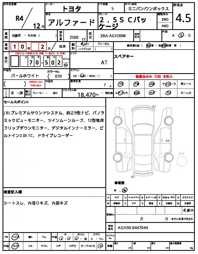 The 2022 TOYOTA ALPHARD, a sleek and spacious minivan, is a head-turner in its Pearl finish. Under the hood, you’ll find a 2500 cc engine powered by gasoline, with power steering and power windows making driving and parking a breeze. This reliable ride is available for international buyers through AutoXGlobal, a trusted provider of used car exports from Japan. For those seeking a trustworthy and comfortable ride, the used 2022 TOYOTA ALPHARD export from Japan is an excellent choice, featuring 2WD and Aluminum wheels for a smooth ride and stylish appearance.