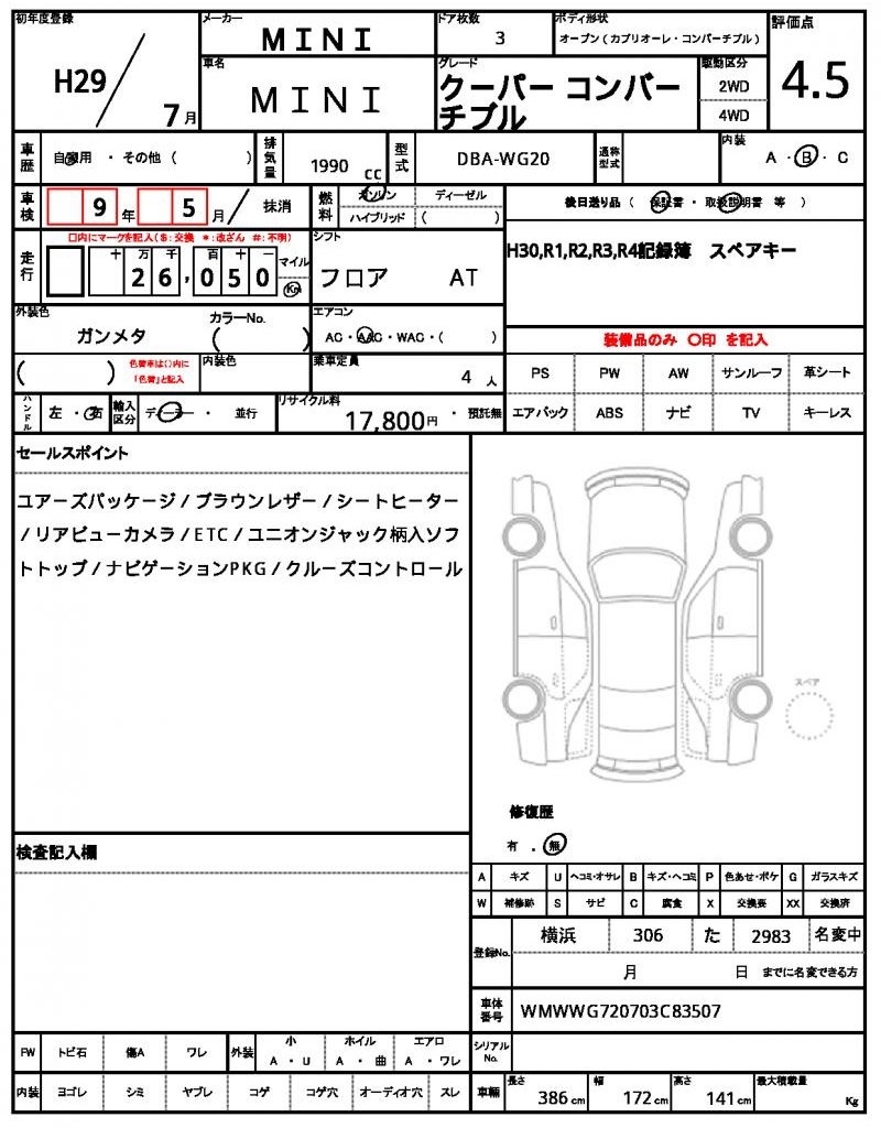 Meet the 2017 MINI MINI Convertible, a stylish and fun-to-drive roadster that turns heads wherever you go. Powered by a 1990cc gasoline engine, this rear-wheel drive convertible is perfect for cruising with the top down. As a used car from Japan, this MINI MINI Convertible is available for international buyers through AutoXGlobal. With a maintenance log and record book included, and a history of no accidents, this Japanese used car export is a reliable and exciting option for those looking to bring a piece of MINI MINI’s iconic style to their driveway.
