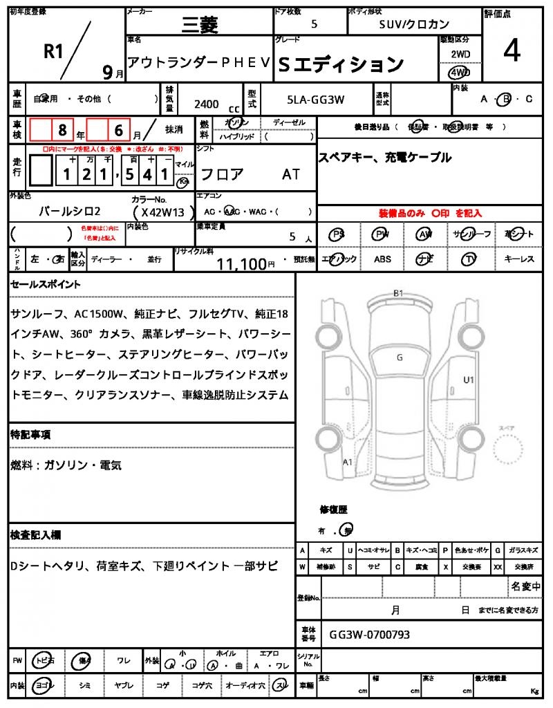 The 2019 Mitsubishi Outlander PHEV, a sleek Pearl-colored SUV, is ready to hit the road. This environmentally-friendly vehicle is powered by a 2400 cc gasoline engine and features a 4WD drive system, making it perfect for navigating various terrain. As a used car from Japan, this Outlander PHEV is available for international buyers through AutoXGlobal. Get ready to take the wheel of this Japanese used car export, the perfect blend of power and efficiency in a stylish package.