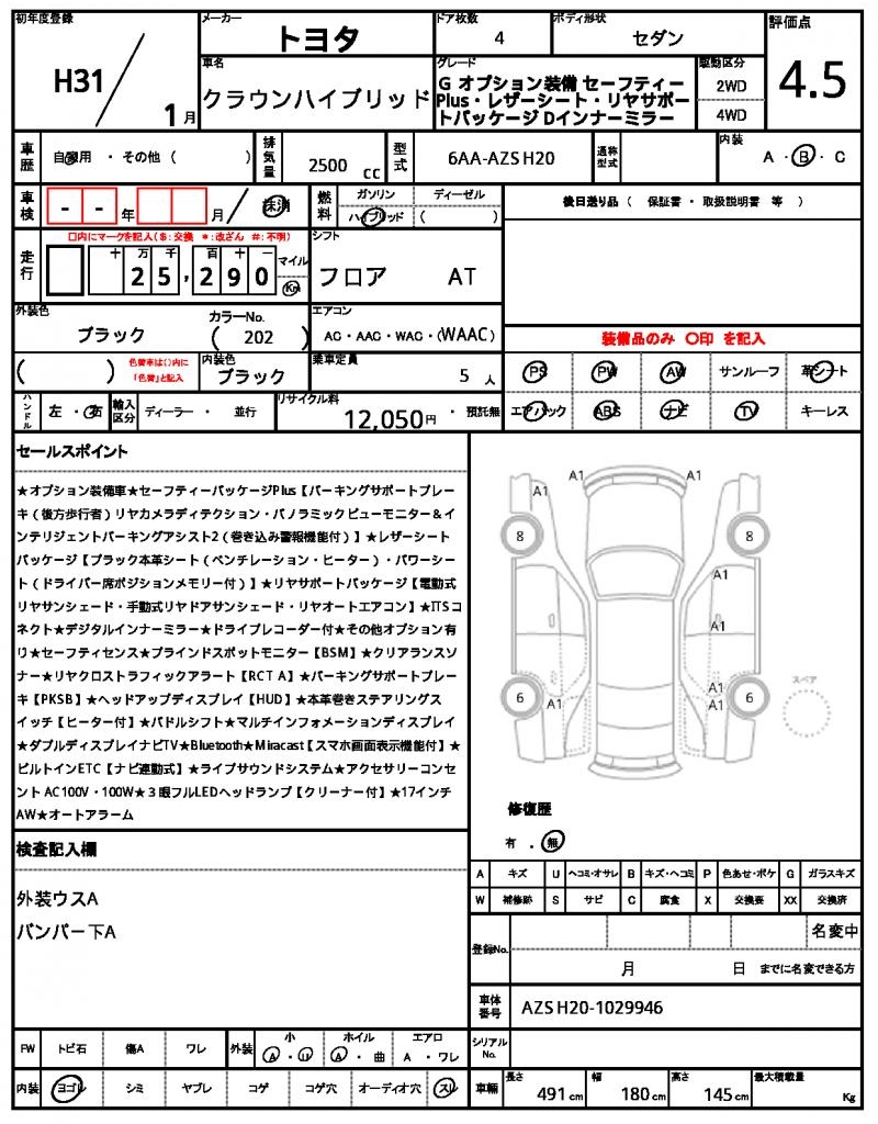 This sleek 2019 TOYOTA CROWN HYBRID Sedan in black is a head-turner on the road. Under the hood, you’ll find a 2500 cc engine that runs on hybrid fuel, making it a reliable and eco-friendly choice. As a used car from Japan, it’s available through AutoXGlobal for international buyers looking for a great deal. Whether you’re cruising the city or the highway, the TOYOTA CROWN HYBRID is a fantastic Japanese used car export that’s sure to impress.