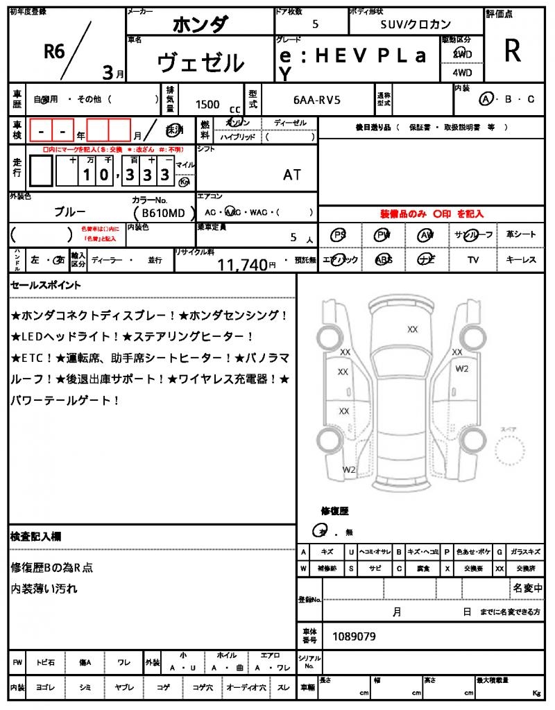 This 2024 HONDA VEZEL is a sleek blue SUV that’s perfect for those who want a reliable ride. Under the hood, you’ll find a 1500cc gasoline engine, paired with a 2WD drive system and equipped with power steering for easy maneuverability. As a used car from Japan, it’s available for international buyers through AutoXGlobal. Get behind the wheel of this Japanese used car export, a 2024 HONDA VEZEL, and enjoy features like power windows and aluminum wheels.