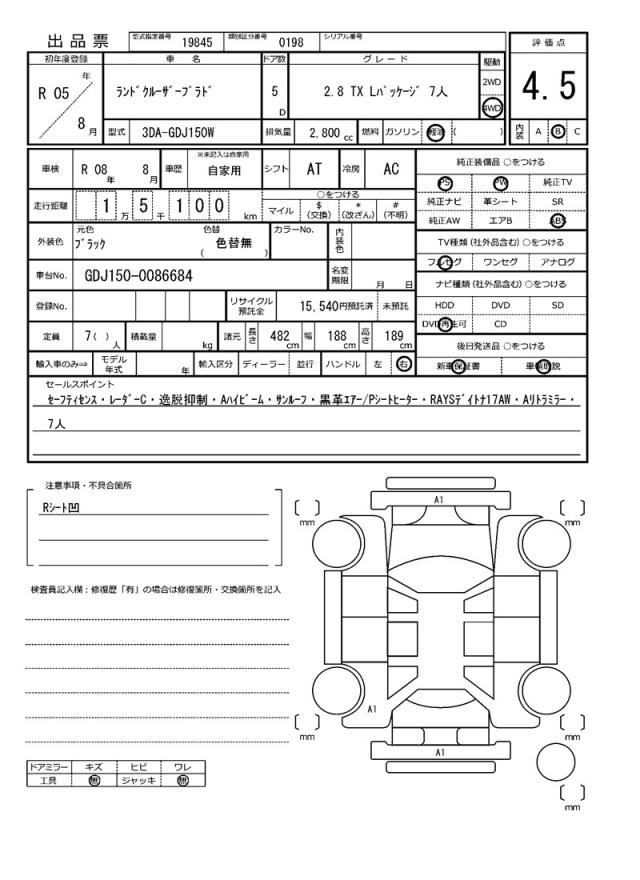 Meet the 2023 TOYOTA LAND CRUISER PRADO, a black SUV that exudes ruggedness and reliability. Under the hood, you’ll find a 2800cc diesel engine, paired with a 4WD drive system that’s perfect for off-road adventures. As a used car from Japan, this Land Cruiser Prado is now available through AutoXGlobal for international buyers. If you’re looking for a reliable and powerful SUV for export from Japan, the 2023 TOYOTA LAND CRUISER PRADO with its power steering and power windows is an excellent choice.