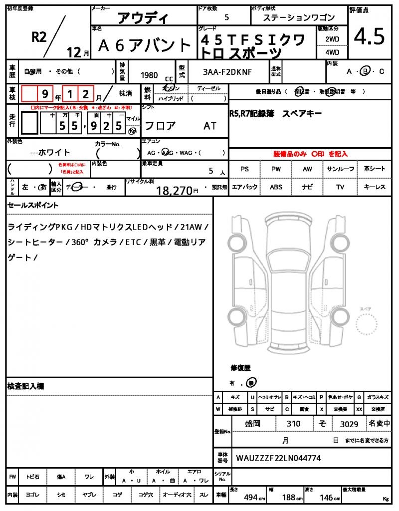 This stunning 2020 Audi A6 Avant Wagon is a head-turner in its crisp white finish, with a sleek design that turns heads on the road. Powered by a 1980cc gasoline engine, this vehicle is equipped with 2WD and air conditioning for a comfortable ride. This used car hails from Japan and is available through AutoXGlobal for international buyers. With a maintenance log and record book included, as well as a clean history with no accidents, this Audi A6 Avant Wagon export from Japan is a reliable choice for those seeking a quality used car.