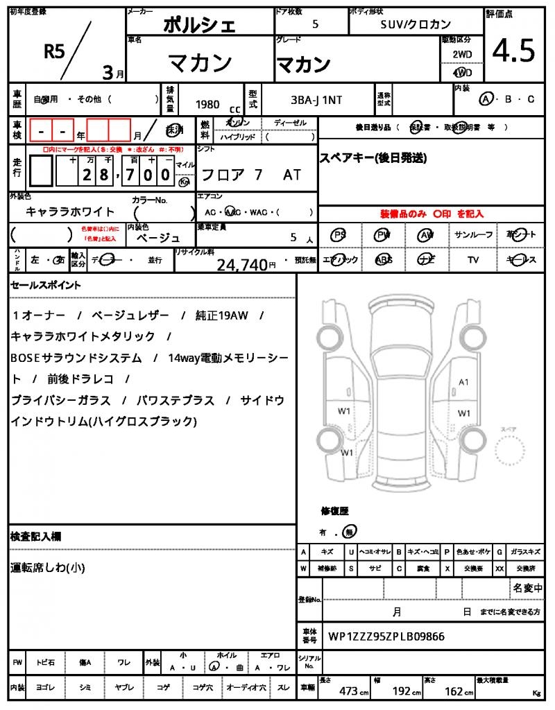 This stunning 2023 Porsche Macan is a white SUV that exudes luxury and performance. Under the hood, you’ll find a 1980cc gasoline engine, paired with a 4WD system and complemented by features like power steering and power windows. As a used car, it’s available for international buyers through AutoXGlobal, making it the perfect option for those looking to import a reliable and stylish ride. Experience the thrill of driving a Porsche Macan, export from Japan, and enjoy the benefits of a well-maintained used vehicle from the Land of the Rising Sun.