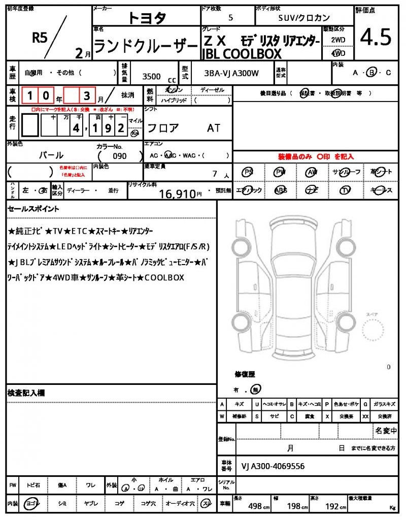 The 2023 TOYOTA LAND CRUISER is a stunning Pearl-colored SUV that commands attention. Under the hood, you’ll find a robust 3500 cc gasoline engine, paired with a 4WD drive system for effortless traction and control, along with features like power steering and power windows. This exceptional vehicle is a used car from Japan, available exclusively through AutoXGlobal for international buyers. If you’re looking for a reliable and capable LAND CRUISER, look no further than this Japanese used car export.
