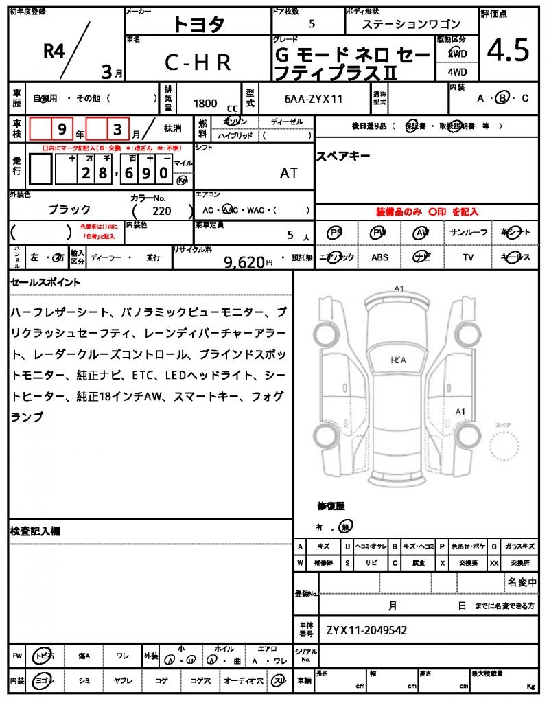 This sleek black Toyota C-HR Wagon, a 2022 model, is a stylish and reliable ride. Under the hood, you’ll find a 1800 cc gasoline engine, paired with a 2WD drive system, making it perfect for everyday commuting. As a used car exported from Japan, this vehicle has been carefully inspected and is now available for international buyers through AutoXGlobal. If you’re looking for a practical and feature-packed Toyota C-HR export from Japan, look no further!