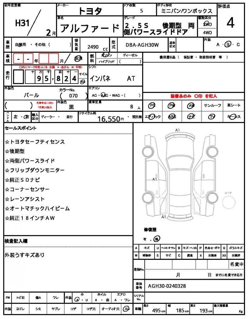 The 2019 Toyota Alphard, a reliable and spacious minivan, is available in a stunning Pearl color. Under the hood, you’ll find a 2.5-liter gasoline engine, paired with a 2WD drive system, making it a great choice for daily driving. As a used car export from Japan, this vehicle has been carefully inspected and is now available for international buyers through AutoXGlobal. For those looking for a practical and comfortable ride, the 2019 Toyota Alphard, a renowned Japanese used car export, is definitely worth considering.