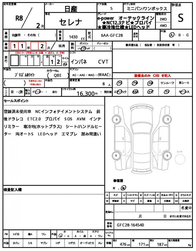 Meet the 2026 NISSAN SERENA, a sleek and practical white minivan that’s perfect for families or small groups. Under the hood, you’ll find a reliable 1430 cc hybrid engine that combines power with fuel efficiency, paired with a smooth 2WD drive system and features like power steering and power windows. This vehicle is a used car from Japan, available for international buyers through AutoXGlobal. If you’re looking for a dependable and feature-packed SERENA for export from Japan, look no further!