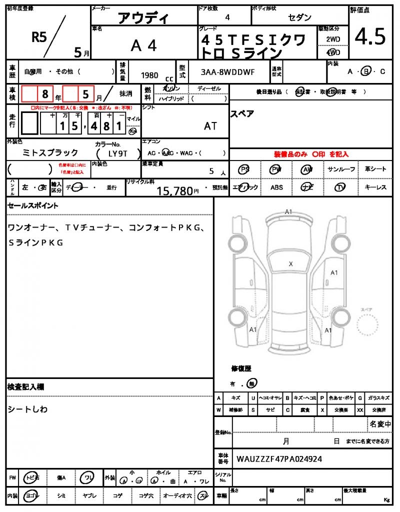 The 2023 Audi A4 Sedan in sleek black is a stylish and reliable ride, packed with features to make your daily commute a breeze. Under the hood, you’ll find a powerful 1980cc engine running on gasoline, paired with a 4WD drive system and equipped with power steering for smooth handling. As a used car export from Japan, this Audi A4 is available through AutoXGlobal for international buyers. Whether you’re looking for a trusty daily driver or a stylish addition to your fleet, this Japanese used car export is the perfect choice.