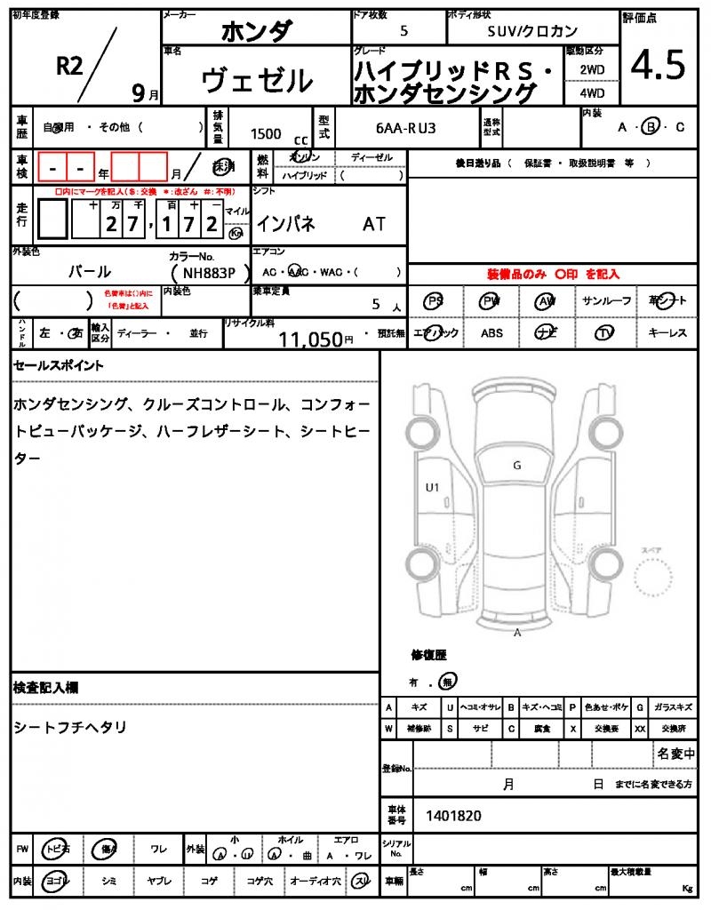 The 2020 Honda Vezel is a sleek Pearl-colored SUV that packs a punch. Under the hood, you’ll find a 1500cc engine that’s fueled by gasoline and delivers a smooth ride thanks to its power steering. As a used car from Japan, this Vezel is available for international buyers through AutoXGlobal. With its aluminum wheels and power windows, this Japanese used car export is a great option for anyone looking for a reliable and feature-rich ride.