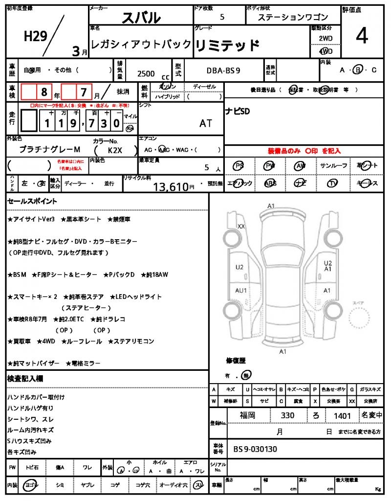 The 2017 Subaru Legacy Outback is a reliable and rugged gray wagon that’s ready to hit the open road. Under the hood, you’ll find a powerful 2500cc gasoline engine, paired with a 4WD system and aluminum wheels, making it perfect for adventure seekers. As a used car from Japan, this Outback has been thoroughly inspected and is now available through AutoXGlobal for international buyers. Whether you’re looking for a reliable daily driver or a trusty companion for your next expedition, this Japanese used car export is the perfect choice – a 2017 Subaru Legacy Outback.