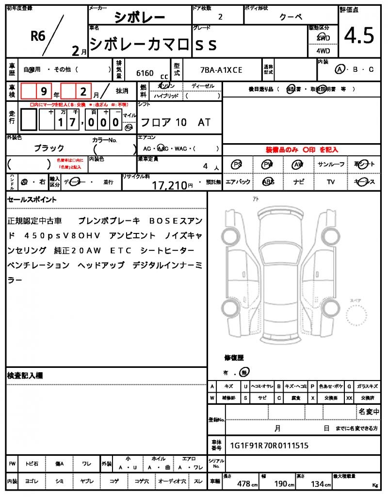 The sleek and powerful 2024 CHEVROLET CAMARO Coupe arrives in black, a head-turning ride that’s sure to draw attention on the road. Under the hood, a 6160cc gasoline engine delivers a potent punch, paired with 2WD for a smooth ride and responsive handling, complete with power steering for a confident driving experience. As a used car export from Japan, this CAMARO is available for international buyers through AutoXGlobal. If you’re looking for a high-performance ride with a touch of elegance, the 2024 CHEVROLET CAMARO export from Japan is a great choice, featuring power windows and Aluminum wheels for a premium feel. The Chevrolet Chevrolet Camaro is available for export from Japan through AutoXGlobal.