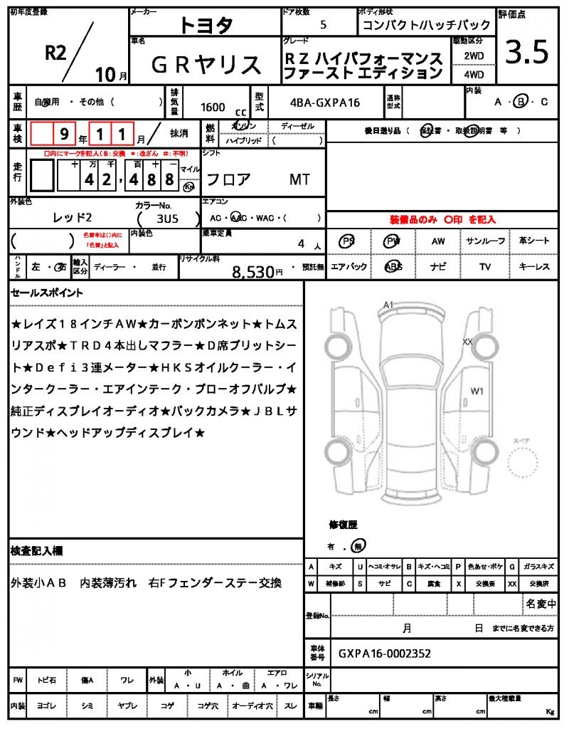 This 2020 Toyota GR Yaris is a rare find, a bright red hatchback that turns heads on the road. Under the hood, you’ll find a 1600cc engine purring smoothly, powered by gasoline and delivering a smooth ride with the help of power steering. As a used car from Japan, this GR Yaris is available for international buyers through AutoXGlobal. With its impressive maintenance log and record book included, you can trust that this Japanese used car export is a reliable choice for your next set of wheels.