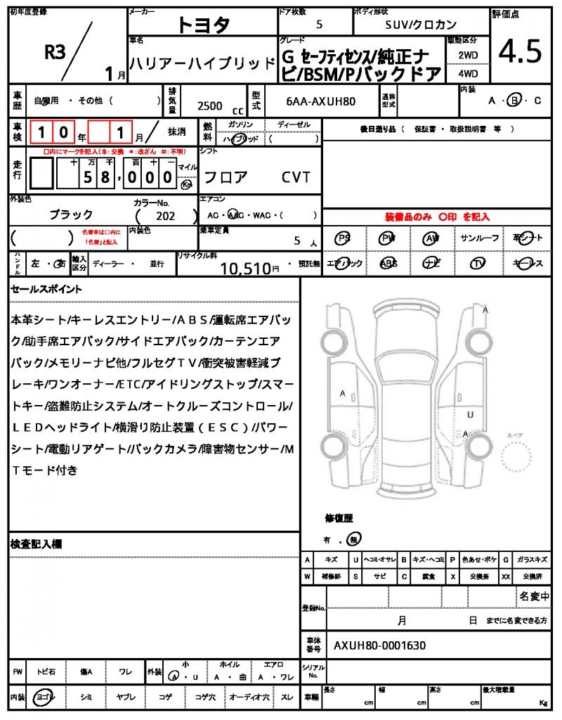 The 2021 Toyota Harrier Hybrid is a sleek and powerful black SUV that’s sure to turn heads on the road. With its 2500cc engine and hybrid fuel system, this vehicle provides a smooth and efficient driving experience, complete with power steering and power windows to make your daily commute a breeze. This is a used car from Japan, available for international buyers through AutoXGlobal. The Toyota Harrier Hybrid is now available for export from Japan, offering a reliable and fuel-efficient ride for those looking to bring a piece of Japanese ingenuity to their home country.