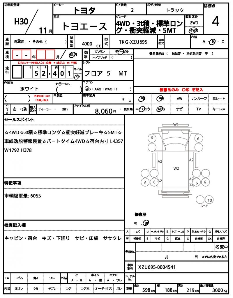Meet the 2018 TOYOTA TOYOACE, a white 4×4 truck that’s ready to take on any terrain. Its powerful 4000 cc diesel engine delivers strong performance and towing capacity, and features like power steering and power windows make driving a breeze. This reliable ride is a used car from Japan, available exclusively through AutoXGlobal for international buyers. Check out this great opportunity to own a TOYOTA TOYOACE export from Japan, a tried-and-true Japanese used car export.