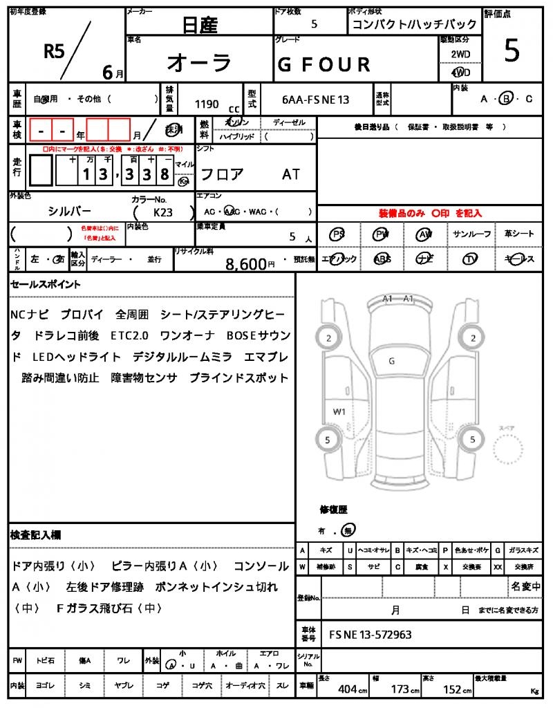 Meet the 2023 Nissan Aura, a silver hatchback that’s sure to turn heads. Under the hood, you’ll find a 1190cc engine that’s paired with a gasoline fuel system and 4WD drive, making it perfect for navigating rough terrain. As a used car from Japan, this Aura is available exclusively through AutoXGlobal for international buyers looking for a reliable ride. If you’re in the market for a quality Japanese used car export, the 2023 Nissan Aura is a great choice.