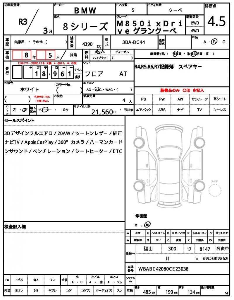 This stunning 2021 BMW 8 SERIES Coupe is a head-turning ride, with its sleek white finish drawing attention wherever it goes. Under the hood, you’ll find a 4390cc engine paired with gasoline fuel and a 2WD drive system, making it a smooth and efficient ride. This vehicle is a carefully selected used car from Japan, available exclusively through AutoXGlobal for international buyers. As a Japanese used car export, this 2021 BMW 8 SERIES Coupe is a rare opportunity to own a high-performance coupe, complete with maintenance log and record book included.