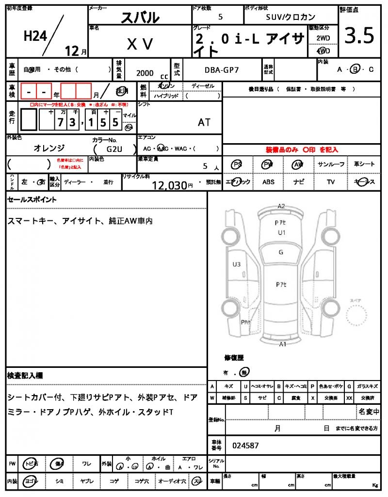 Meet the 2012 Subaru XV, a vibrant orange SUV that’s sure to turn heads on the road. Under the hood, you’ll find a 2000 cc gasoline engine, paired with a reliable 4WD system and featuring power steering for easy maneuverability. This Japanese used car is now available for international buyers through AutoXGlobal, offering a unique opportunity to own a quality vehicle from overseas. Whether you’re looking to import a Japanese used car for personal use or resale, the 2012 Subaru XV is an excellent choice – a Japanese used car export perfect for adventure-seekers and commuters alike.
