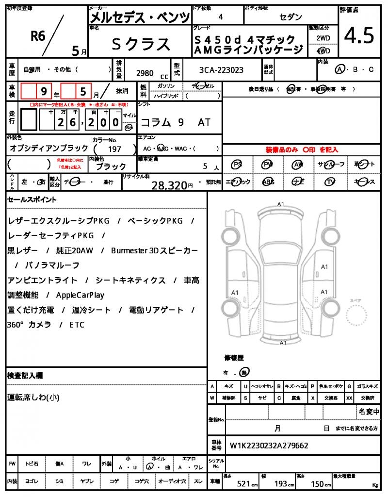 Meet the 2024 MERCEDES BENZ S-CLASS, a sleek black sedan that exudes sophistication. Under the hood, you’ll find a powerful 2980 cc diesel engine, paired with a 4WD system and features like power steering and power windows. As a used car from Japan, this MERCEDES BENZ S-CLASS is available through AutoXGlobal for international buyers looking for a reliable ride. For those seeking a high-quality Japanese used car export, the 2024 MERCEDES BENZ S-CLASS is an excellent choice, boasting aluminum wheels and a durable diesel engine.