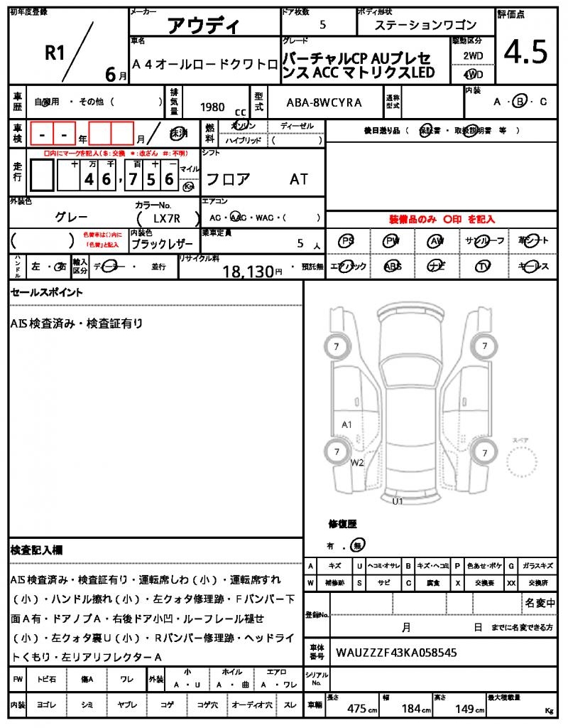 This 2019 Audi A4 Allroad Quattro wagon is a stylish gray ride with plenty of features to enjoy. Under the hood, you’ll find a 1980cc gasoline engine with 4WD capabilities, making it perfect for those who want to take on any road. As a used car from Japan, this vehicle is available for international buyers through AutoXGlobal. The Audi A4 Allroad Quattro export from Japan is a great find for anyone looking for a reliable and feature-packed wagon.