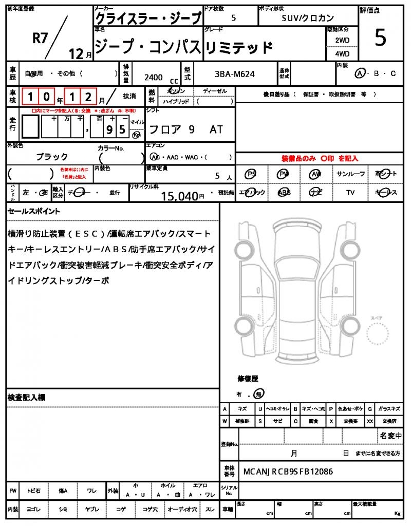 Meet the 2025 Chrysler Jeep Compass, a sleek black SUV that’s ready to hit the roads. Under the hood, you’ll find a reliable 2400cc gasoline engine with 2-wheel drive, making it perfect for everyday driving and featuring power steering for a smooth ride. This vehicle is a used car from Japan, available exclusively through AutoXGlobal for international buyers. Whether you’re looking for a reliable runaround or a fun adventure companion, the Jeep Compass is a great choice – export from Japan with AutoXGlobal. The Chrysler Jeep Jeep Compass is available for export from Japan through AutoXGlobal.