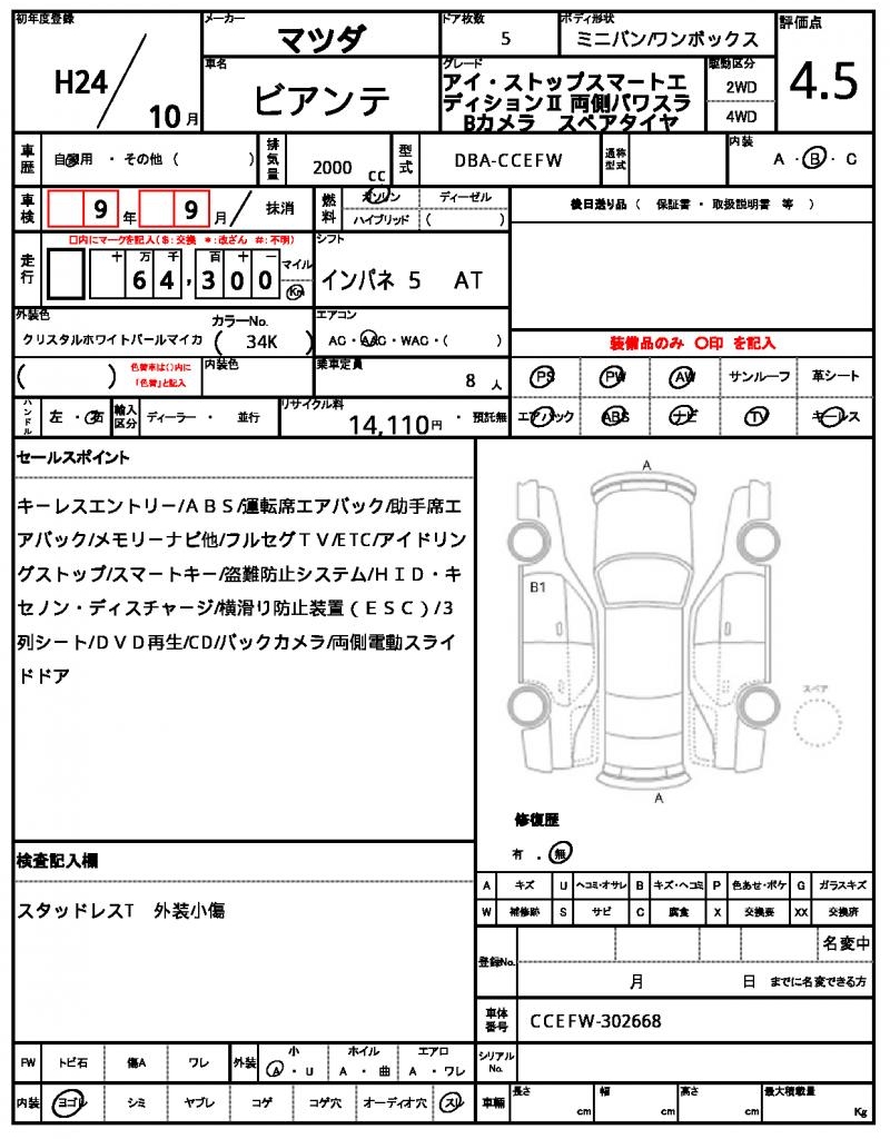 Meet the 2012 Mazda Biante, a reliable and spacious minivan with a sleek Pearl exterior. Under the hood, you’ll find a 2000cc gasoline engine, paired with a 2WD drivetrain for smooth handling and efficient fuel consumption. As a bonus, the Biante comes equipped with power steering and power windows for added convenience. Available through AutoXGlobal, this Japanese used car export is perfect for international buyers looking for a reliable ride.