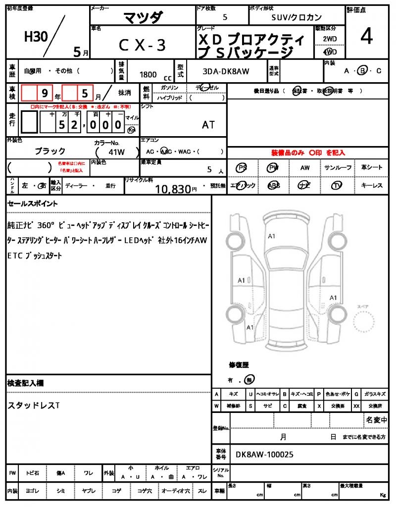 This 2018 MAZDA CX-3 SUV stands out with its sleek black finish. Under the hood, you’ll find a reliable 1800cc diesel engine, paired with 4WD for confident handling on any terrain, and features like power steering and power windows for added convenience. As a used car from Japan, this MAZDA CX-3 is now available for international buyers through AutoXGlobal. Explore the world of Japanese used car exports with this reliable and feature-packed 2018 MAZDA CX-3 export from Japan.