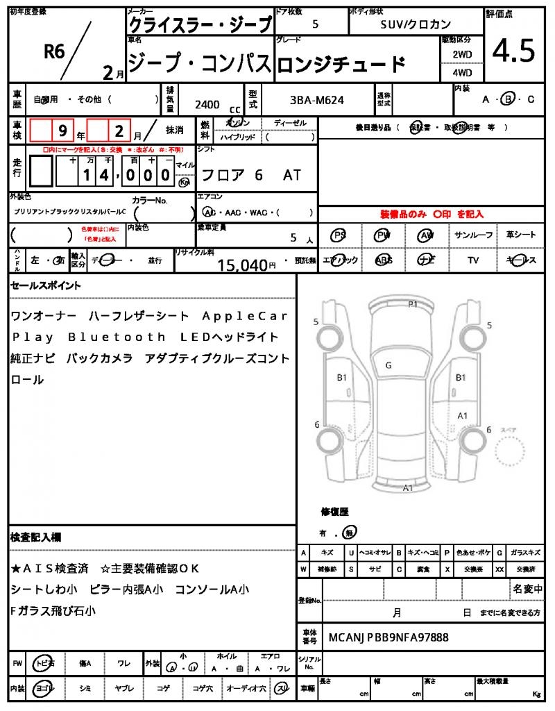 Meet the 2024 CHRYSLER JEEP COMPASS, a sleek and capable black SUV that’s ready for adventure. Under the hood, you’ll find a reliable 2400 cc engine that runs on gasoline and features power steering for smooth maneuverability. As a used car from Japan, this COMPASS is available exclusively through AutoXGlobal for international buyers looking for a great deal. Whether you’re exploring new trails or commuting through the city, this Japanese used car export is the perfect companion – featuring power windows and sleek Aluminum wheels to boot. The Chrysler Jeep Jeep Compass is available for export from Japan through AutoXGlobal.