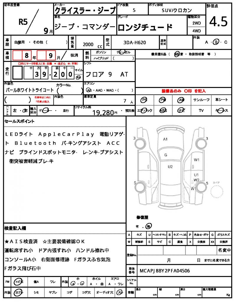 Meet the 2023 CHRYSLER JEEP COMMANDER, a sleek white SUV that’s ready to hit the roads. Under the hood, you’ll find a reliable 2000cc diesel engine, paired with a 2WD drive system for smooth handling. As a used car from Japan, this Commander is now available for international buyers through AutoXGlobal. If you’re looking for a dependable ride with key features like power steering and power windows, look no further than this Japanese used car export, the 2023 CHRYSLER JEEP COMMANDER. The Chrysler Jeep Jeep Commander is available for export from Japan through AutoXGlobal.